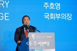 - 주호영 국회부의장이 24일 오후 서울 중구 더플라자 호텔에서 '인공지능 아니면 죽음(AI or Die)'이라는 주제로 열린 '제17회 착한 성장, 좋은 일자리 글로벌포럼(2025 GGGF)'에서 축사를 하고 있다. 2025.09.24