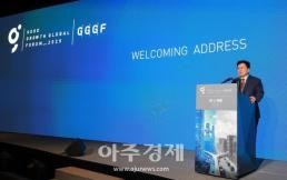 - [포토] 2025 GGGF 개회사하는 곽영길 아주뉴스코퍼레이션 회장